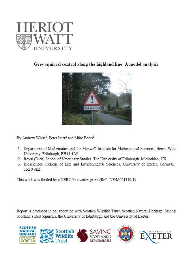 - White, A. and Lurz, P.W.W. 2014. A modelling assessment of control strategies to prevent/reduce Squirrelpox spread. SNH Commissioned Report No. 627 PDF COPY