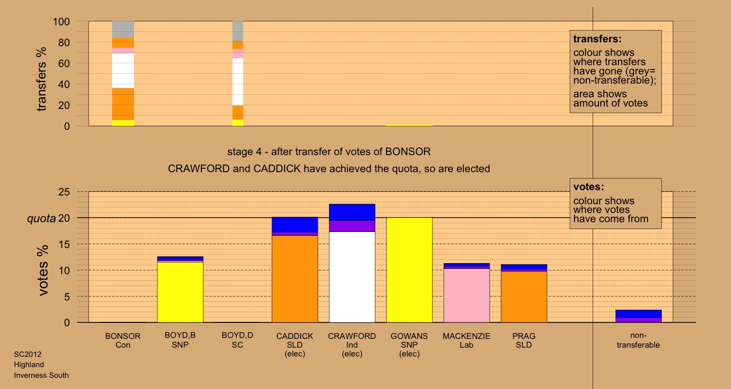 Elected: Ken GOWANS (SNP), Jim CRAWFORD (Ind), Carolyn CADDICK (SLD), Thomas PRAG (SLD) |