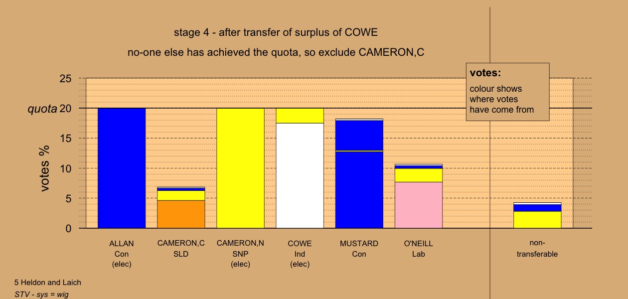 Elected: NEIL CAMERON (SNP), James ALLAN (Con), John COWE (Ind), Bridget MUSTARD (Con) |