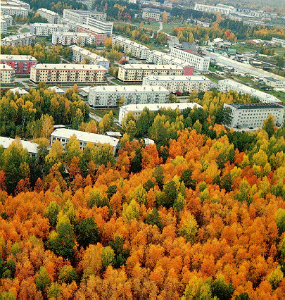 right in the middle of a forest. This Siberian town, extending on the shore
